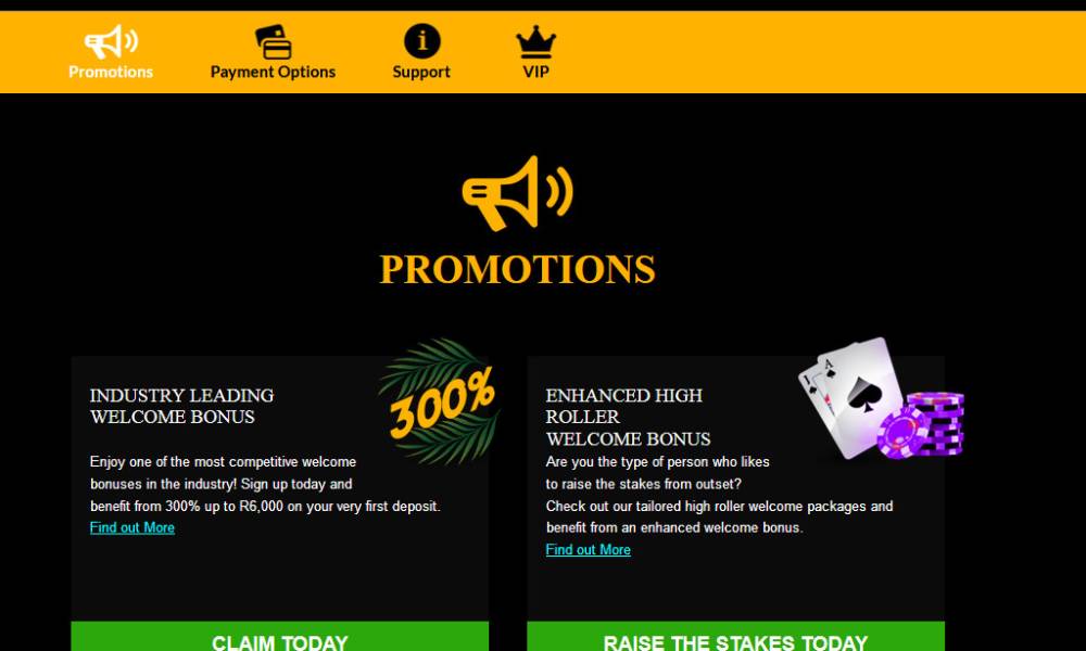 • Newcomers get a 300% bonus up to six thousands rands for the first deposit.