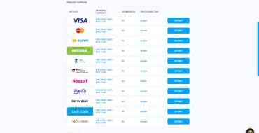 Bank cards, transfers, and electronic systems are supported for deposits and withdrawals. Deposit and withdrawal limits depend on the method used and the client's status.