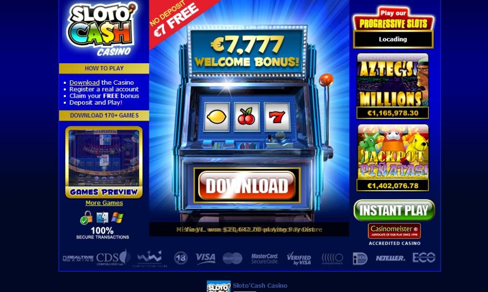 SlotoCash Casino is worth to your attention due to its flexible bonus policy. It includes a depositless bonus as well as a welcome bonus of nearly 8000 Euro for every new customer. Here are offered the games by Real Time Gaming and the homepage is translated into many languages.