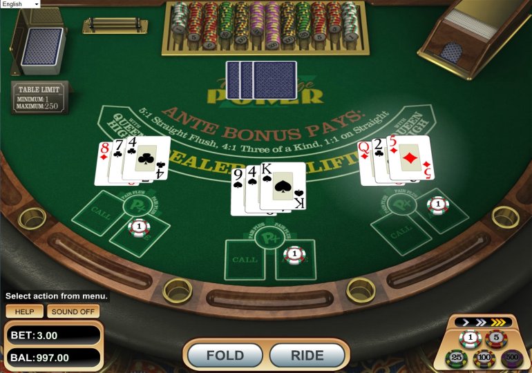 There is also a kind of three-card poker with a draw and fixed jackpots. To participate in them, you need to make an additional bet of one dollar. The players should have a particular hand in it.