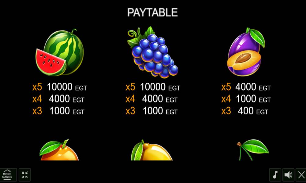 The design of the fruit pokie is standard - the reels are located in the center, jackpots - on the side, buttons - at the bottom. There are three spin modes, turbo spins and status bar. The game is accompanied by active music.