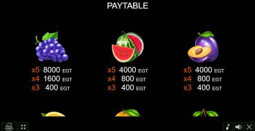 5 reels have three rows each of classic symbols: grapes, watermelon and plum are expensive; lemon, orange and cherry are cheap. All of them make combinations of 3-5 pieces on the line from left to right from the first column. There are also Wild and Scatter symbols, which also bring a payout. Winning lines in the pokie are 10, they are fixed. Users can bet on the spin 10, 20, 50, 100, 200 coins, the equivalent of which in currency should be recognized in the casino. The provider added jackpots and a risk game to the slot. In the base round, the maximum prize is limited to x20000 of the bet, and Jackpots have no limit.