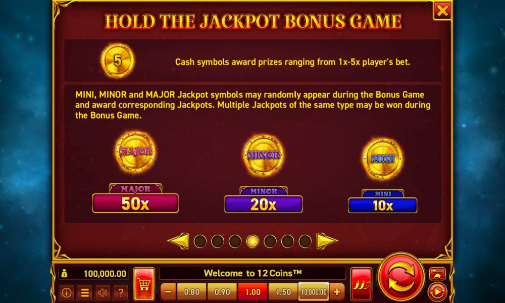 Cash Coins symbols with monetary values that can bring wins from 1x to 5x the bet. These symbols fill positions on the reels to activate the Hold The Jackpot bonus round.