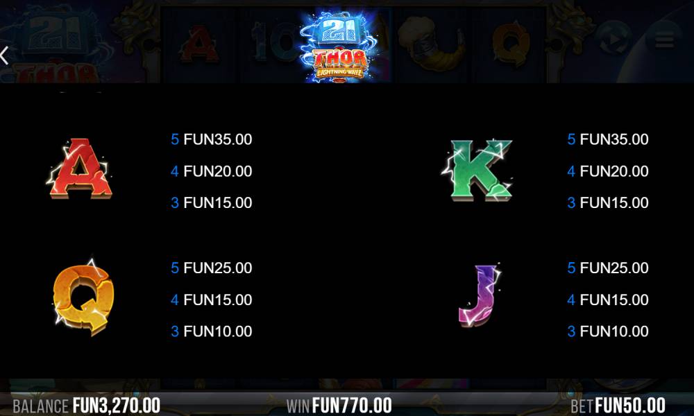 The maximum bet in 21 Thor Lightning Ways reaches €250.