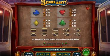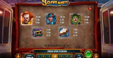 The 3 Clown Monty slot machine from the Play’n Go provider has a standard 5x3 playing field with 10 pay lines.
