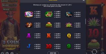 The delight of the game and the joy of victory the user will experience if he spins the reels in an honest casino. Then he will be able to immediately withdraw money in a convenient way. And in general, reliable casinos do not reduce the chances, do not reduce the payout percentage, offer many bonuses and additional benefits. Therefore, only in them you should open the online pokie 3 Coin Cowboy from Atomic Pokie Lab and try your luck.