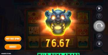The interface of 4 Masks of Inca is not complicated, although there are a lot of elements in it. The playing field with reels is traditionally in the center. To the right of it are buttons for launching: normal, accelerated and automatic. Above the reels there are 4 masks with boosters counters for each. To the left of the playing field is another booster (for Wild symbols) in the form of a burning panther head. Below it are the Boost and Buy Free Spins buttons, and even lower still is the balance.