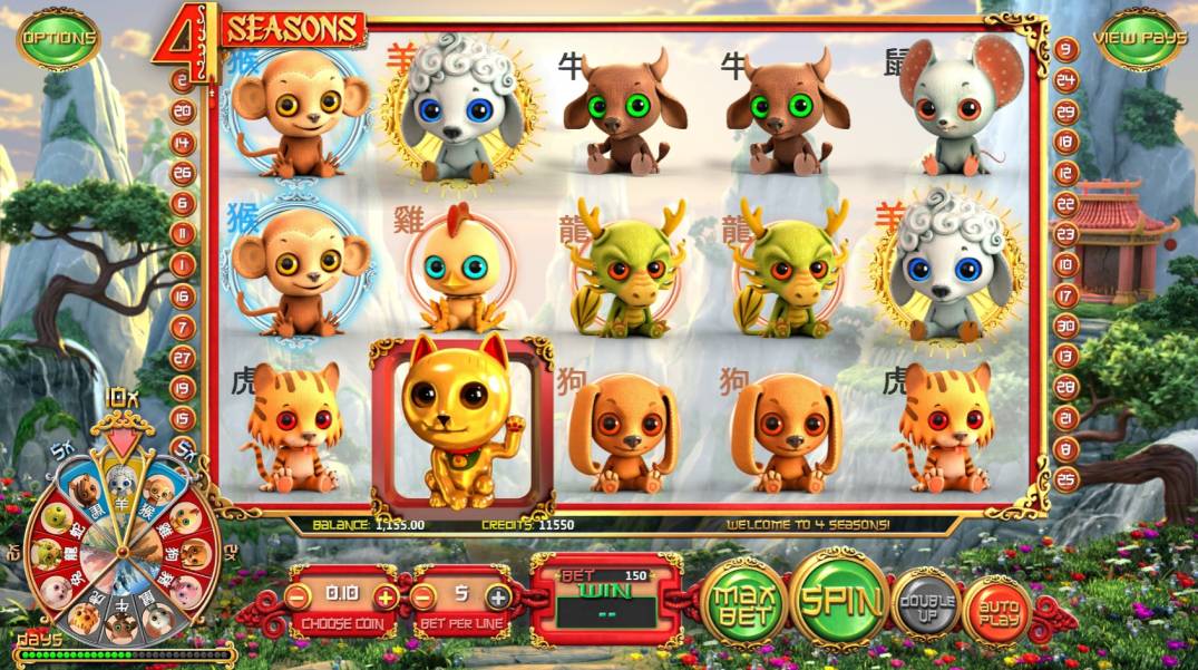 The developers of Betsoft Gaming company have managed to impress us with an incredibly beautiful 3D video slot again. This time they have presented a stunning novelty named «4 Seasons». This game is devoted to Chinese zodiac. We would like to remind you that this circuit consists of twelve parts and every year is associated with an animal according to it. So, the specialists of Betsoft are happy to show the gamblers the charming babies of that animals. But, it’s enough of introductions - let’s discuss all advantages of this model.