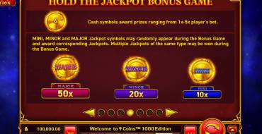 Mini, Minor and Major Jackpot symbols that can bring jackpots of 10x, 20x and 50x the bet respectively.