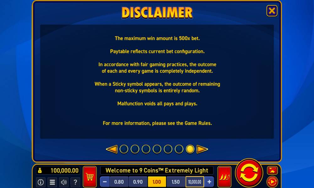9 Coins Extremely Light by Wazdan is an exciting online slot that focuses on simplicity and a classic gaming experience, with an emphasis on coin and jackpot symbols. The visual style is done in a retro video game manner, which creates a sense of nostalgia and classics. The main elements here are coins and bonus symbols that symbolize wealth. The main bonus game activated by filling a 3x3 grid with bonus symbols. Filling it completely brings 500x the bet.