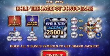 Mystery Jackpot Symbol transforms into one of the jackpots (Mini, Minor, Major) in the Hold the Jackpot bonus game.