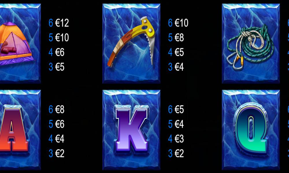 The pokie works without paylines - to win you need to have at least 1 of the same simple symbols appear on at least 3 reels in a row (2 for the oldest symbol - Yeti), starting from the far left, on any row. The size of the field is 6x6, but very often the symbols on the field occupy not 1 cell, but a square of several. Together with the size of symbols changes and the possible number of winning combinations - up to 46656 combinations pay. A total of 15 symbols are involved in the game, of which 12 are simple and only pay, and 3 more have additional properties.