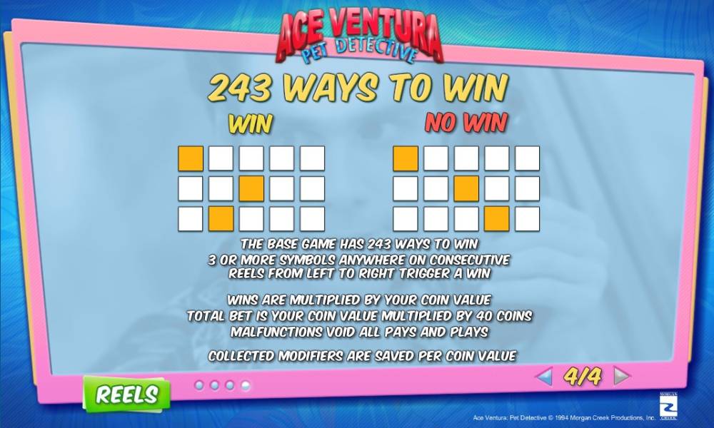 «Ace Ventura: Pet Detective» offers no progressive jackpots.