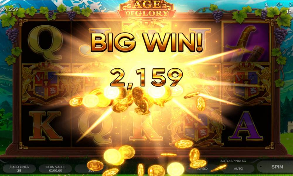 Endorphina's Age of Glory video pokie with a fertile theme of historical adventure invites you to search for a royal treasure trove surrounded by the appropriate surroundings. The game features a bonus game with free spins and solid jackpots, as well as a classic risk game with the ability to double your winnings. Getting rich is helped by Wild, which expands vertically, and Scatter, which brings big multipliers.