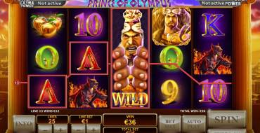 High volatilit of the pokie machine Age of the Gods: Prince of Olympus gives you the opportunity to get rare big wins. It should be remembered that with a fairly low RTP: - 94.82%, the player can only hope for luck.