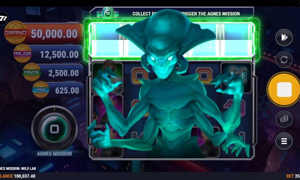 There are 4 jackpots in Agnes Mission: Wild Lab. They are Mini (x50), Minor (x200), Major (x1000) and Grand (x4000). To catch them, you need to collect several Agnes Coin symbols.