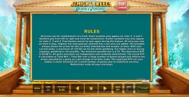 The video game Almighty Reels: Realm of Poseidon, which is endowed with low volatility and has an RTP of 95.08, gives players a significant advantage and more chances to finish the gaming session in the plus. But, any user playing this pokie machine to get a chance to win, must understand: