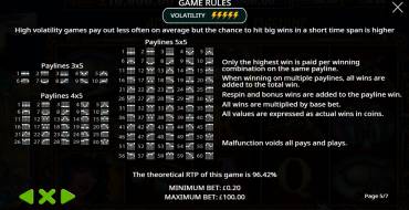 Bet sizes range from 0.20 to 100.00. For 1 bet you can win up to x5100 by any method (simple spin or respin round).