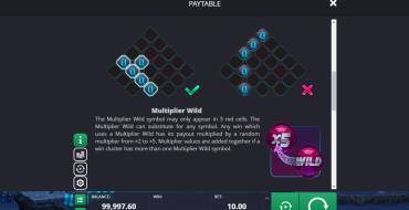 Winning combinations are formed as clusters. From five to twenty two same elements, touching each other by sides bring a win. Location of symbols at the screen makes no sense. Multiple combinations can be formed in result of one spin.