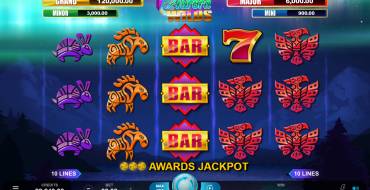 Images at the reels refer to the culture of North American Indians. At least the animals were designed in this style. The background is a beautiful night view with Northern lights above the mountains and woods.