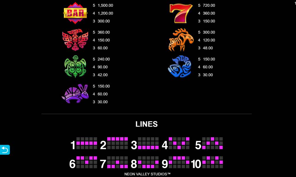 Creators of this colorful video slot describe its theme as "coming back to nature" and "beautiful views of the motherland and magical animal spirits".
