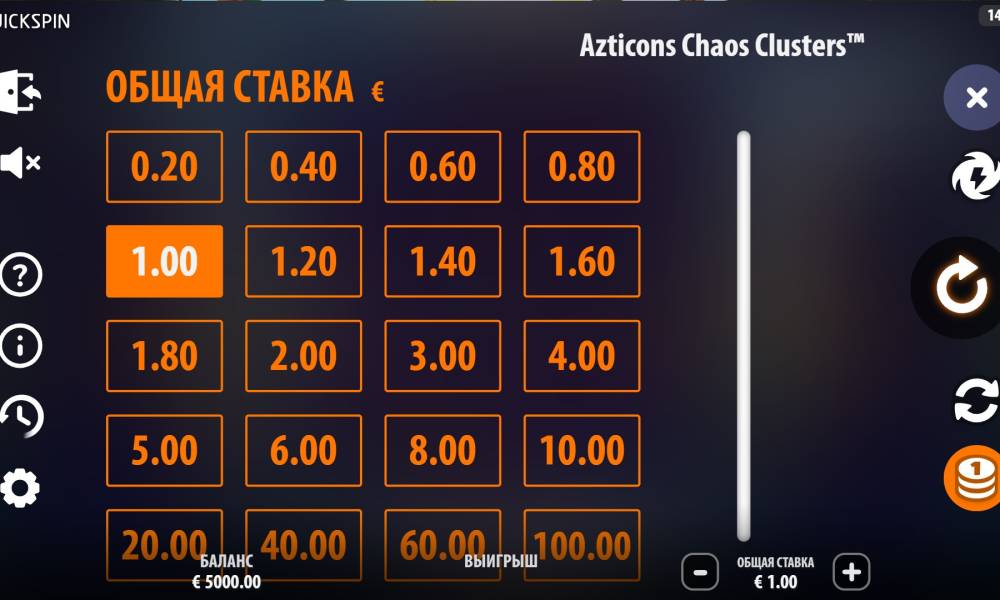 The Azticons Chaos Clusters slot machine from the Quickspin provider can be played on smartphones and tablets, running iOS, Android, and Windows Phone. All that you need is a good network and modern browsers. The rules are the same as in the board version. The interface can be changed only to fit your screen size.