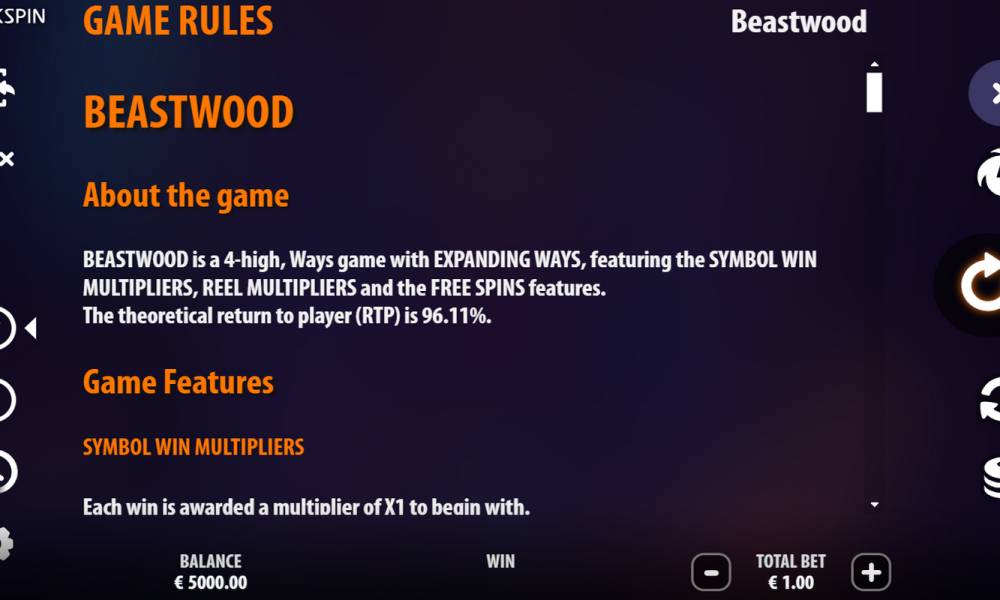 There are no novelties or mysteries in the interface of the Beastwood pokie: