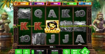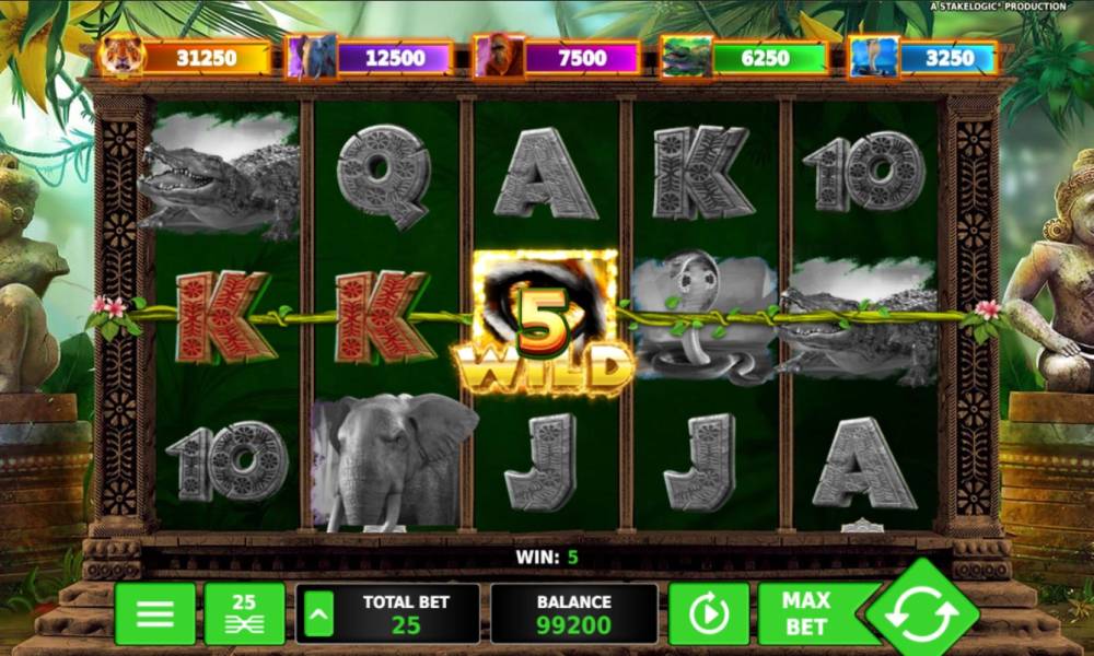 «Big 5 Jungle Jackpot» online slot machine, developed by StakeLogic company (Novomatic Group) invites you to get deep into South Asian jungles, where monkeys are running by ruins of ancient temples, a tiger roars in the deep and rivers are loaded with crocodiles. You’ll be getting numerous payoffs, using opportunities of special symbols and expect some jackpots during the trip.