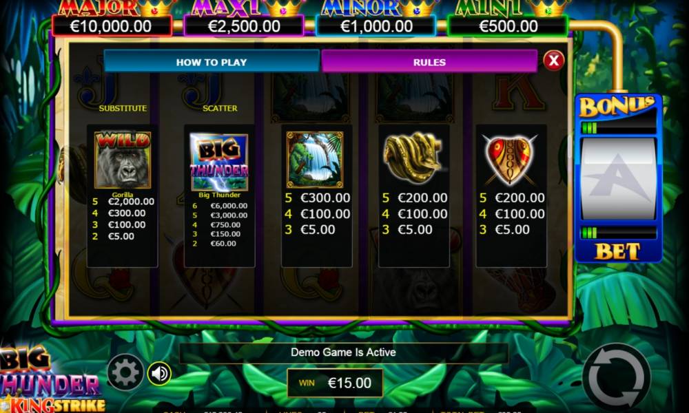 «Big Thunder» allows to set up the sound parameters and size of the screen. The slot is available in a browser. There is a special mobile version for smartphones and tablets.