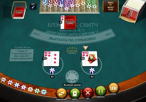It is possible to play Blackjack Switch both in free and regular modes at Europa Casino. The game is also available it some other online casinos running on software released by Playtech. You can also run blackjack without registration directly on the site Casinoz but only for conditional bets.