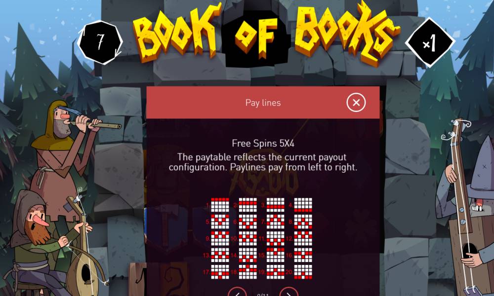 The Book of Books pokie is a classic game with a five-reel field that can be expanded. The base game uses 5×3 field, and during bonuses, such as free spins, it increases to 5×5. Winning combinations are formed on the lines from left to right, starting from the first reel, and are paid for three or more identical symbols on an active line. The game has up to 40 winning lines, the number of which depends on the current game mode. the current game mode.
