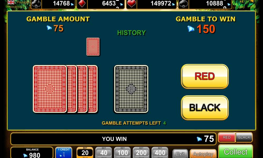This round wouldn't surprise you with anything. A face-down card appears at the additional screen. You would have to guess its color. Correct answer doubles up your winning, while the wrong one means that the player loses the bet. It is possible to guess several times running in the same round, but there is no right for mistake.