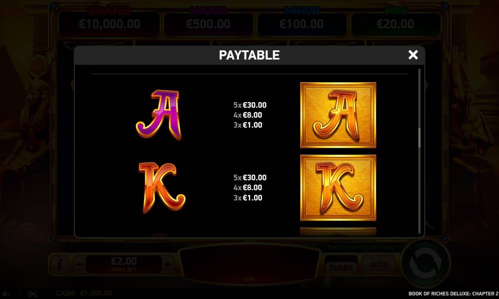 When you study the features of the slot and its functionality, you can start paying for real money and enjoy real winnings. The Book of Riches Deluxe 2 slot machine is in different online casinos in the list below. All of them have licenses and guarantee an honest game. Before playing, look at the paytable, where there is a lot of information about the combination’s win.