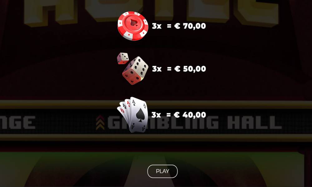 Payouts are for identical symbols on the line, but there are two exceptions. If cards, dice, chips fall out, the player gets x10 of the bet, and when in any other order - x5. There are also two special symbols that give the payout otherwise. Risk game, free spins, respins and other bonuses in the machine are absent. The betting range is wide - 0.1-80 euros.