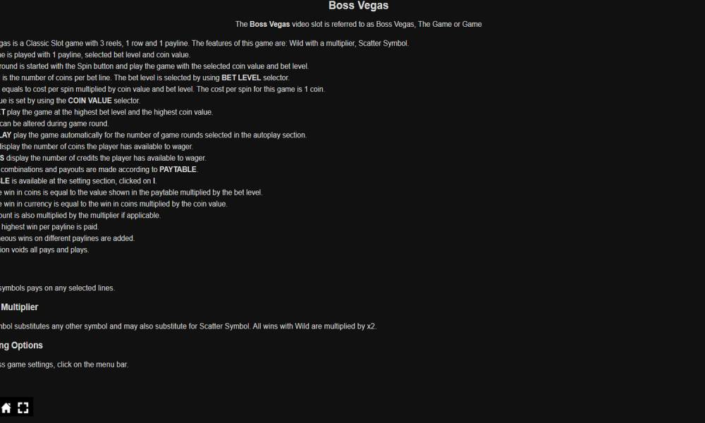The Boss Vegas V2 pokie has three reels and one payline. The size of the prize depends on which 3 identical symbols will be placed on the reels: