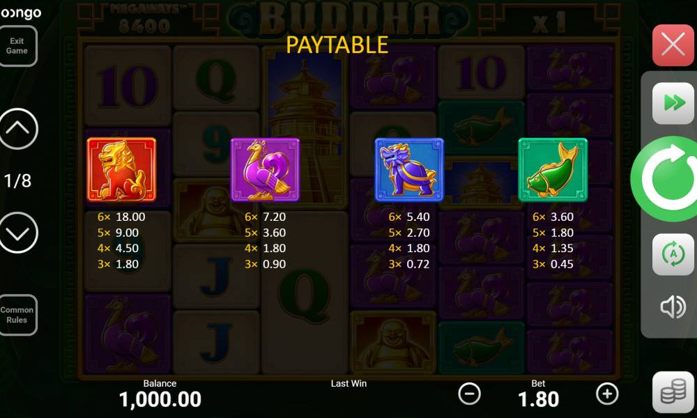 Maxwin in the Buddha Megaways pokie is equal to 12500 bets.