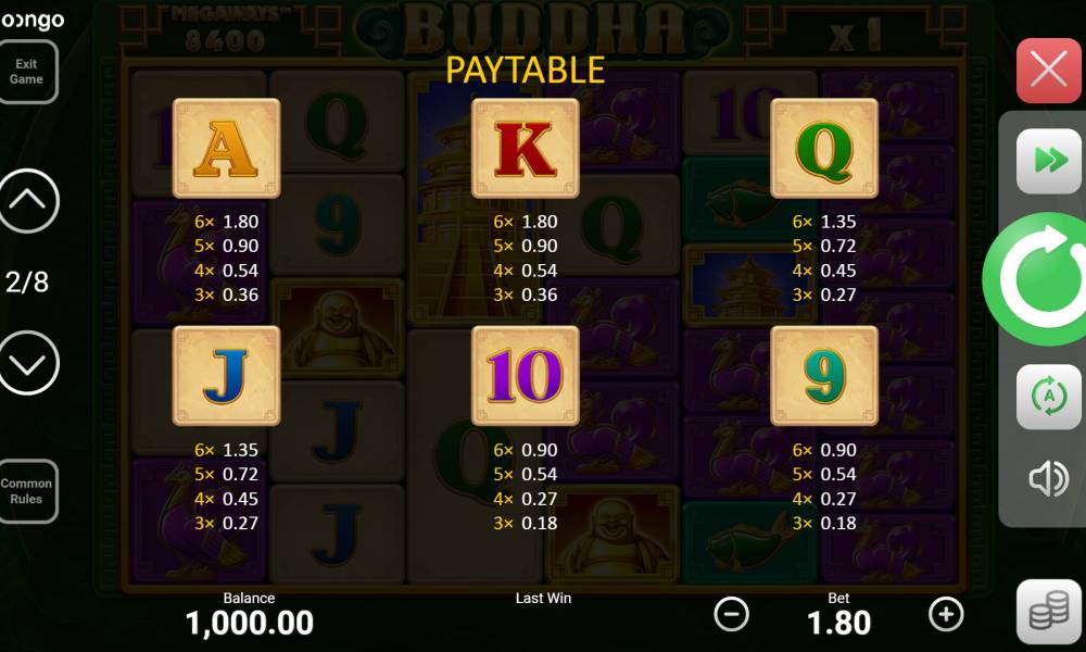 Booongo pokie machines are widespread in online casinos. So it won't be difficult to find the Buddha Megaways slot. We recommend using trustworthy casinos just because they guarantee fair play and the opportunity to maximize your winnings and enjoyment.