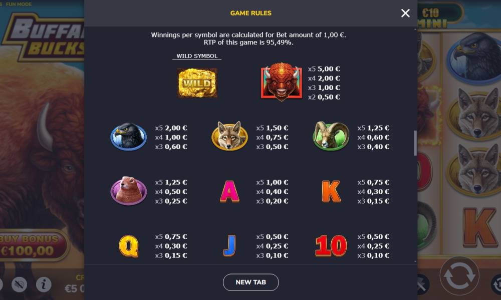 The RTP of the pokie is 95.49%, and when buying the bonus round 95.65%.