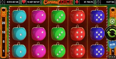 On the five reels are located dice. There are a total of 2 senior, 4 middle and 3 junior symbols. Symbols from the first category are paid from two pieces, all others from three. Maximum can be made up chains of 5 signs. Lines for payouts are fixed 30. Fold prize combinations must be from the leftmost reel in a row. The range of bets in the pokie Caramel Dice - Christmas Edition 0.3-100 euros. The maximum winnings - x1000 of the bet amount. But much more the user can get if the user will break the progressive jackpot.