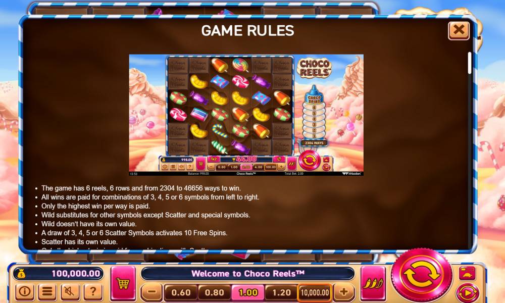 The Choco Reels pokie has 6 reels.
