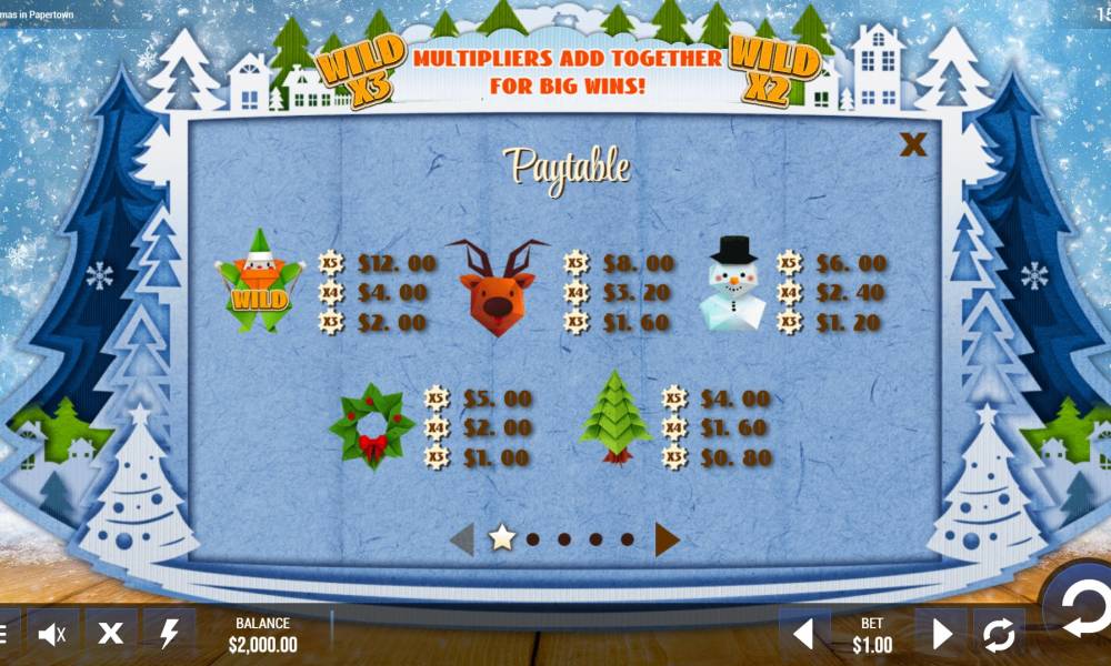 The Christmas in Papertown slot machine from the Microgaming provider has a 5x3 playing field with 25 pay lines.
