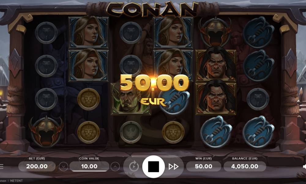 The Conan video slot is provided with different types of symbols, free spins, and unique bonus options.
