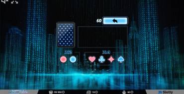 The risk game in CryptoMatrix slot is standard - bets on the suit of the card or its color (red or blue). The prize is doubled every time and you can continue to play as much as you want. But if once do not guess the card, the bonus account will be zeroed, and the user will return to the reels. By the way, start the risk game can only after a profitable spin, then the right side of the button appears with the image of two cards.