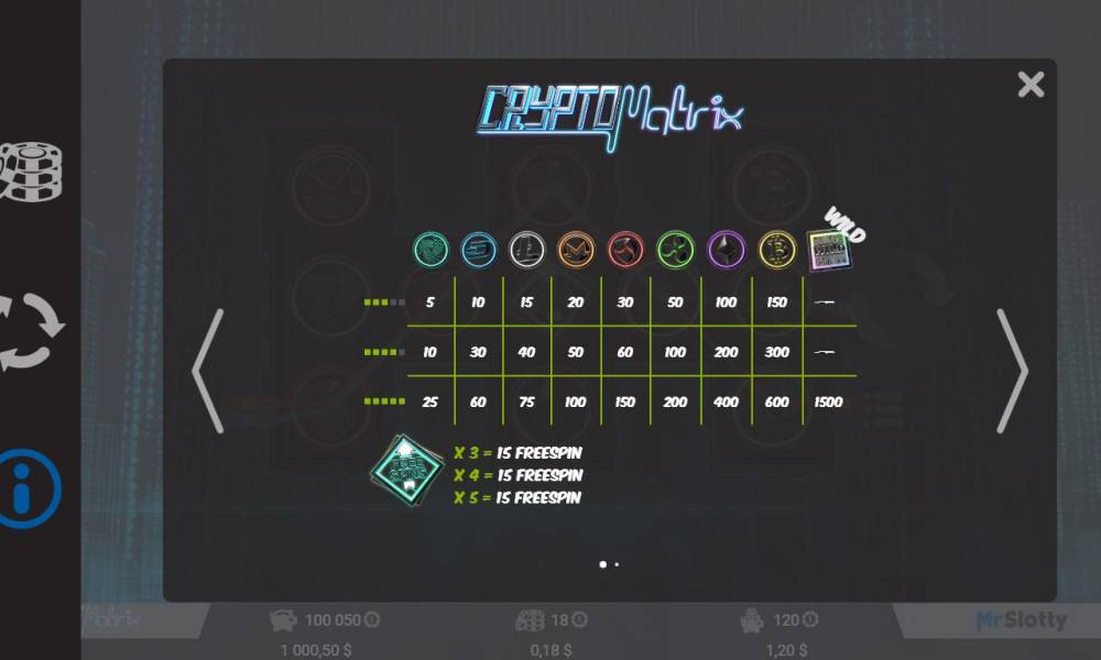 When launching CryptoMatrix slot from MrSlotty, familiarize yourself with the menu: