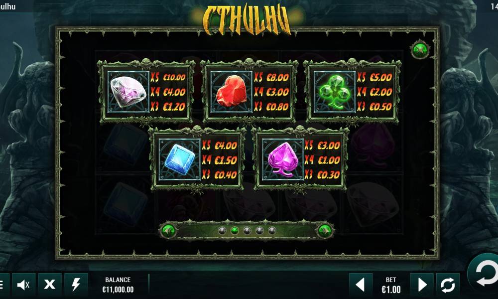 The Cthulhu slot machine from the Yggdrasil provider has a standard 5x3 playing field. Payouts are made on 10 pay lines.