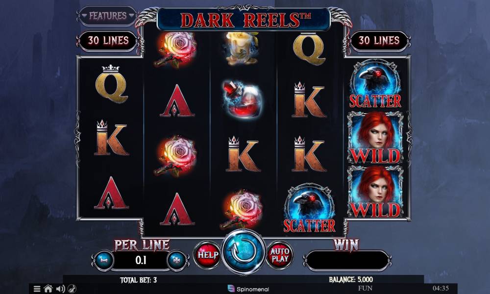 The Dark Reels slot machine from the Spinomenal provider has a 3-4-4-4-3 scheme. All payouts are made on 30 pay lines.