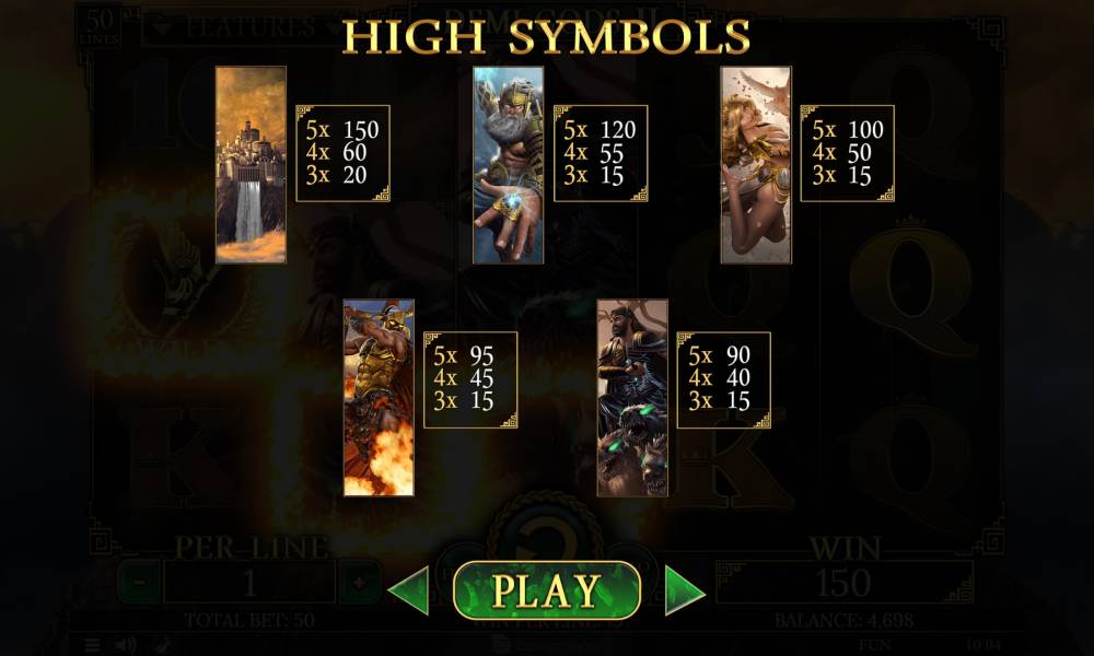 Epic features, epic graphics and epic music! This game will exceed all your expectations and will provide you a full experience of the ancient Greek mythology.Of course, the developers have imaged heroes of ancient legends and playing cards from ten to ace at the reels. The characters take three vertical cells each, that lets them loading whole reels. Letters and numbers and form vertical stacks.
