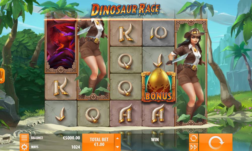 What happens if you lug an egg from a dinosaur's nest? There will be an exciting game of the Dinosaur Rage from Quickspin featuring the attractive Anna bravely swinging a machete and realistically depicted dinosaurs that become enraged at such brazen behavior by the explorer. Outraged animals are magnified 4x to trigger the Pay Anywhere feature, stolen eggs activate free spins with respins and a progressive multiplier, giving players a real chance to win with the maximum reaching x17,794 to their chosen bet.