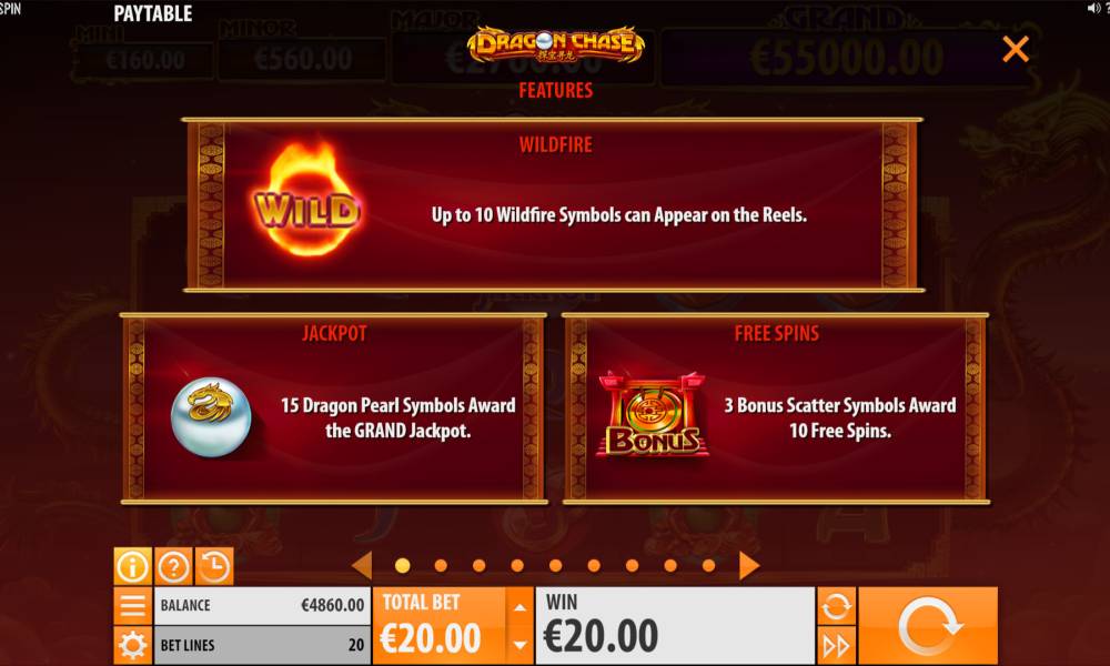 The Dragon Chase offers four jackpots: