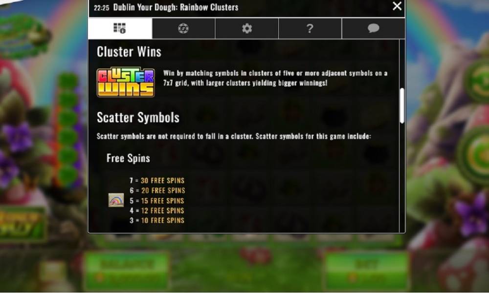 Dublin Your Dough: Rainbow Clusters is a seven cascading reel game with seven rows and multiple winning potential.